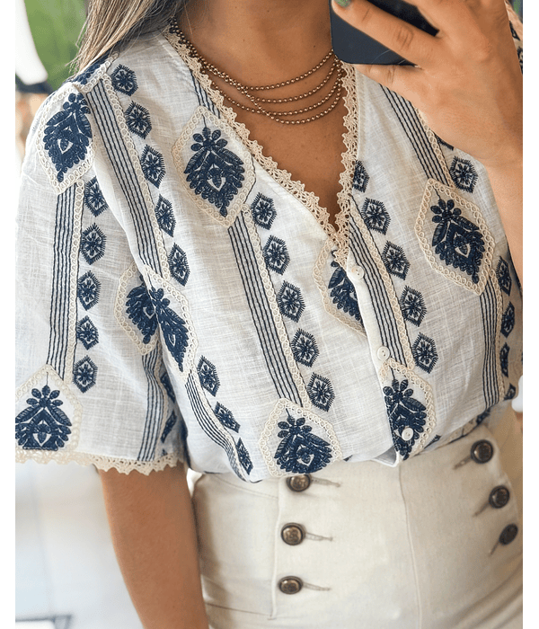 CAMISA BEGE COM BORDADOS